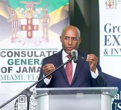 The Honorable Aubyn Hill, Jamaica’s Minister of Industry, Investment and Commerce addressing the audience at the JAUSACC event at Island Space museum. – Luke Ballen ne photo