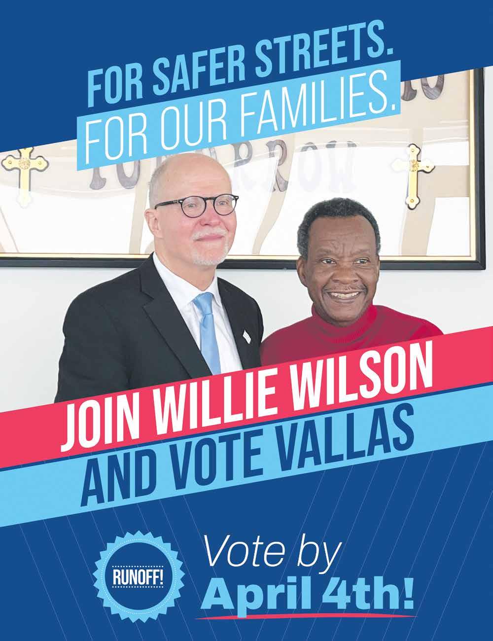 Lifelong Democrat Paul Vallas A Trusted Champion for All Chicagoans. During my 27 years as a principal at Whitney Young, Paul Vallas was one of the best CEOs we ever had. He built schools on the South and West Side and awarded a majority of contracts to minority- and womenowned businesses. Paul Vallas is the right choice to be Mayor at the right time. Chicago’s kids deserve experienced leadership at the helm. “ ” –Dr. Joyce Kenner VALLAS MAYOR FO R PAUL DEMOCRAT Find your early voting location at www.PaulVallas2023.com PAID FOR BY VALLAS FOR MAYOR