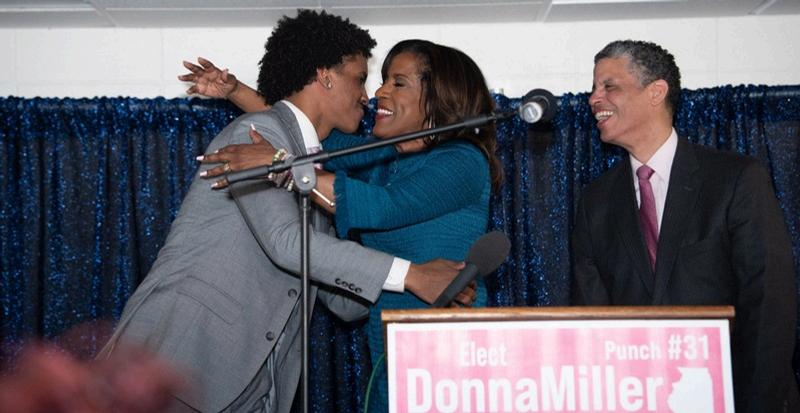CookCountyCommissionerDonnaMillerhugsson,Daniel,afterhervictoryspeechforthe2