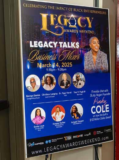 The weekend kicked off with the L.E.G.A.C.Y. Talk Business Mixer, where Aisha “Pinky” Cole of The Slutty Vegan inspired attendees with insights on business growth. On March 15, the WDB L.E.G.A.C.Y. Awards Gala honored leaders such as George Daniels (Leadership Award), Trez Pugh (Community Award), and Dr. Aleta “Englewood Barbie” Clark (Advocacy Award). A posthumous honor was given to Tammera Holmes of Aerostars. The night also featured a showcase of 15 Black-owned restaurants.