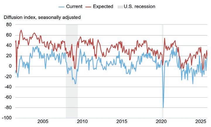 Firms expect conditions to improve in the months ahead, though firms were not as optimistic as last month.