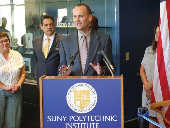 Besides Sio, those speaking at the event included New York State Senator Rachel May (D–Syracuse); New York State Assemblyman Al Stirpe (D–Cicero); New York State Senator Chris Ryan (D–Geddes); Syracuse Mayor Ben Walsh; Onondaga County Executive Ryan McMahon; Katie Newcombe, director of economic development for New York at National Grid; John Liddy,