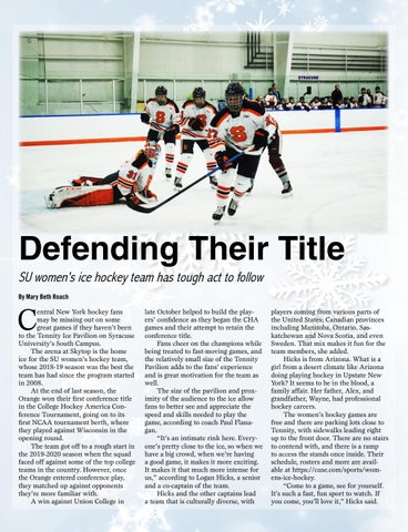 Defending Their Title SU women’s ice hockey team has tough act to follow By Mary Beth Roach