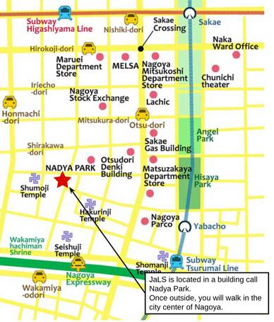 Welcome to JaLS WelcometoJaLS Location NagoyaJaLSislocatedverycentrallyinNagoya‒justa7minutewalkfromSakaestation (oneofthemainstationinthecity).