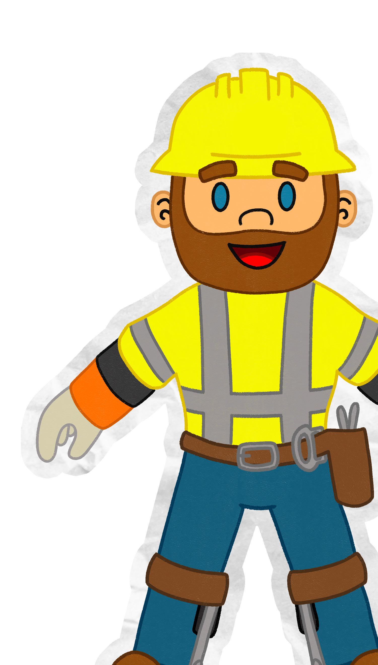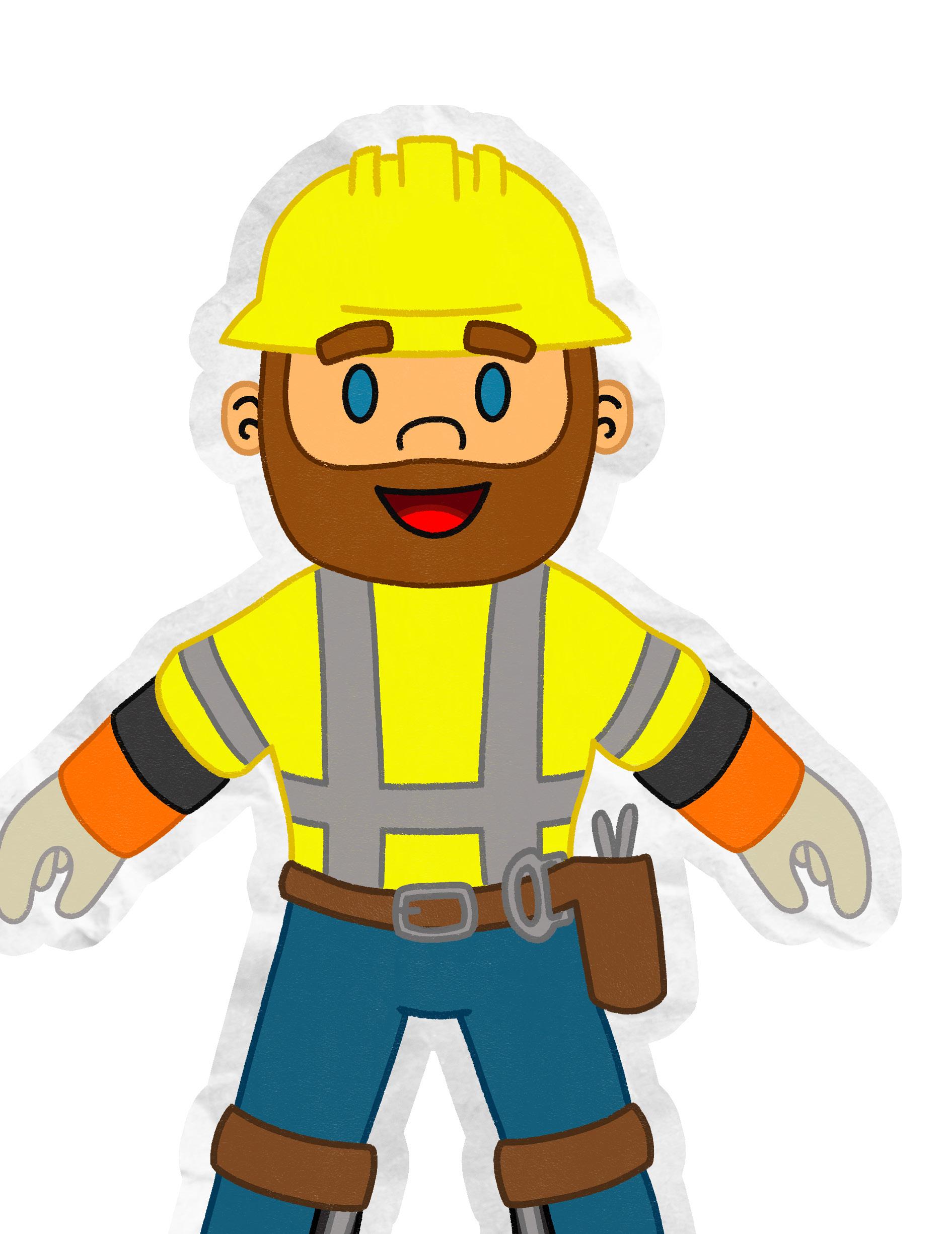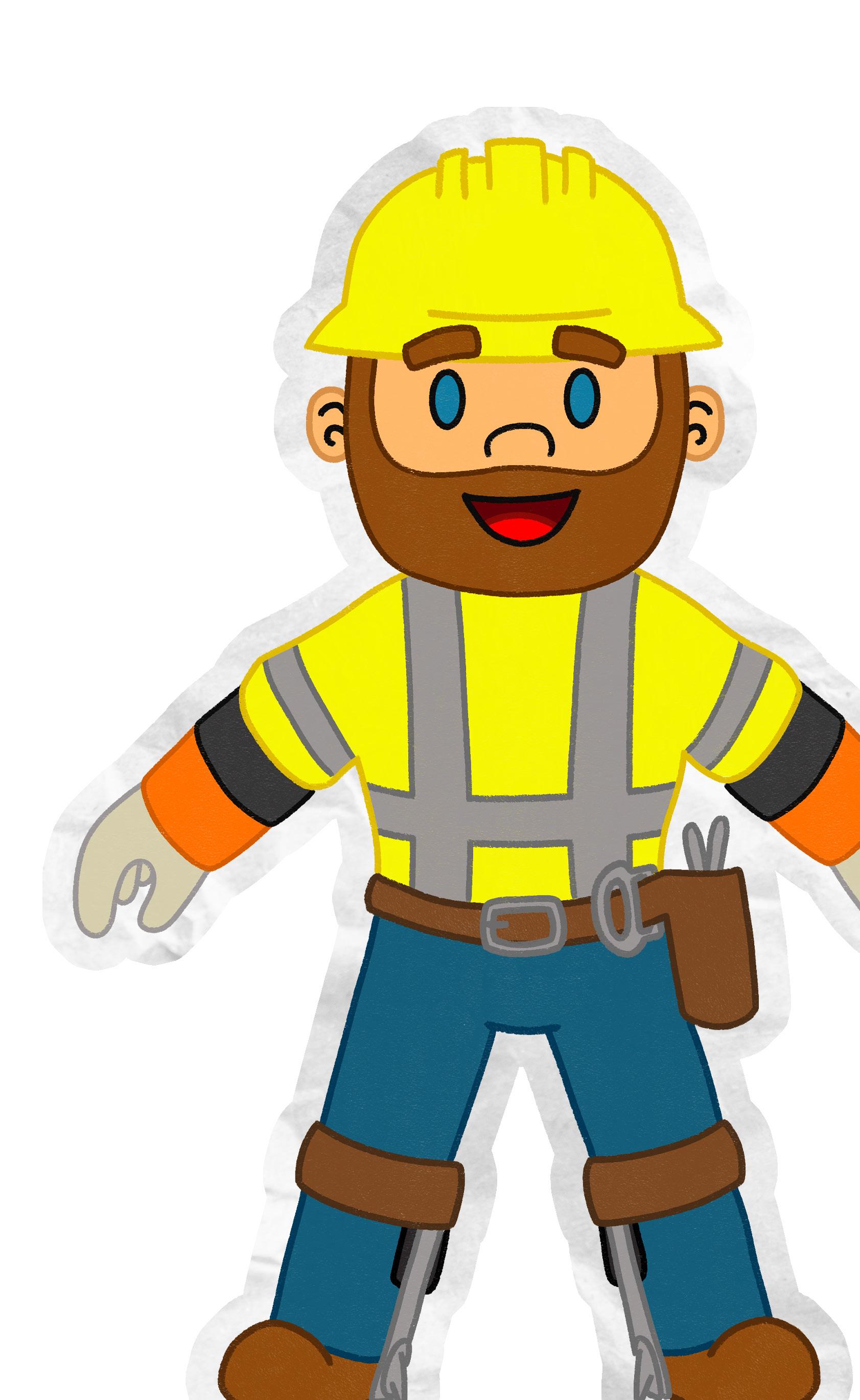 Color him in, cut him out, and place him over all the lineworker images in this book as you read!