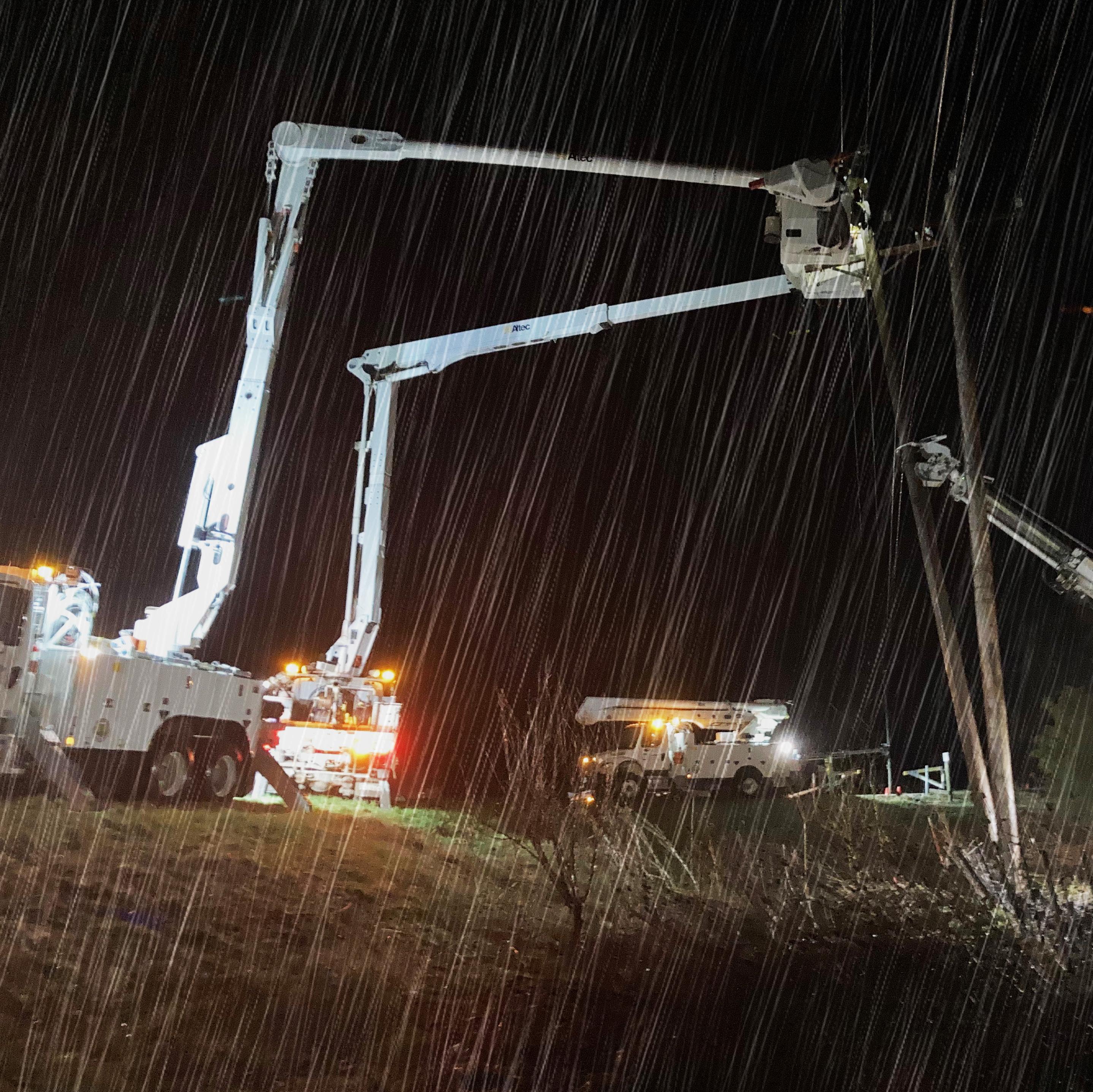 When big storms happen, sometimes the wind or things hitting the power lines and poles can cause an electric outage. When that happens, lineworkers go out in the storm to fix the poles and power lines to get your power back on on as quickly as possible.