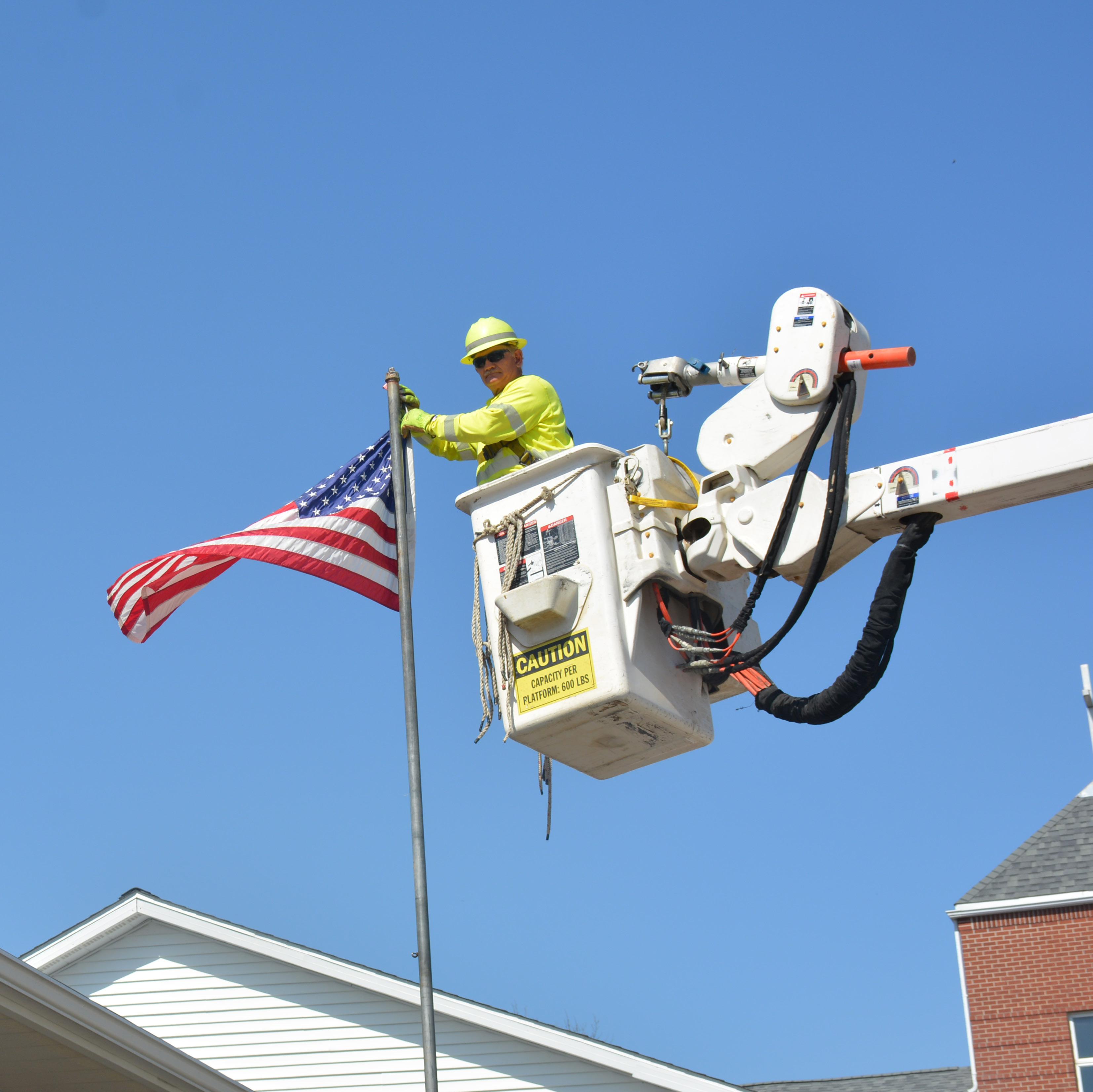 We love our community so much that we frequently participate in parades tossing out candy and help in town when people need a bucket truck to reach things way up high, like a flag on a flagpole!