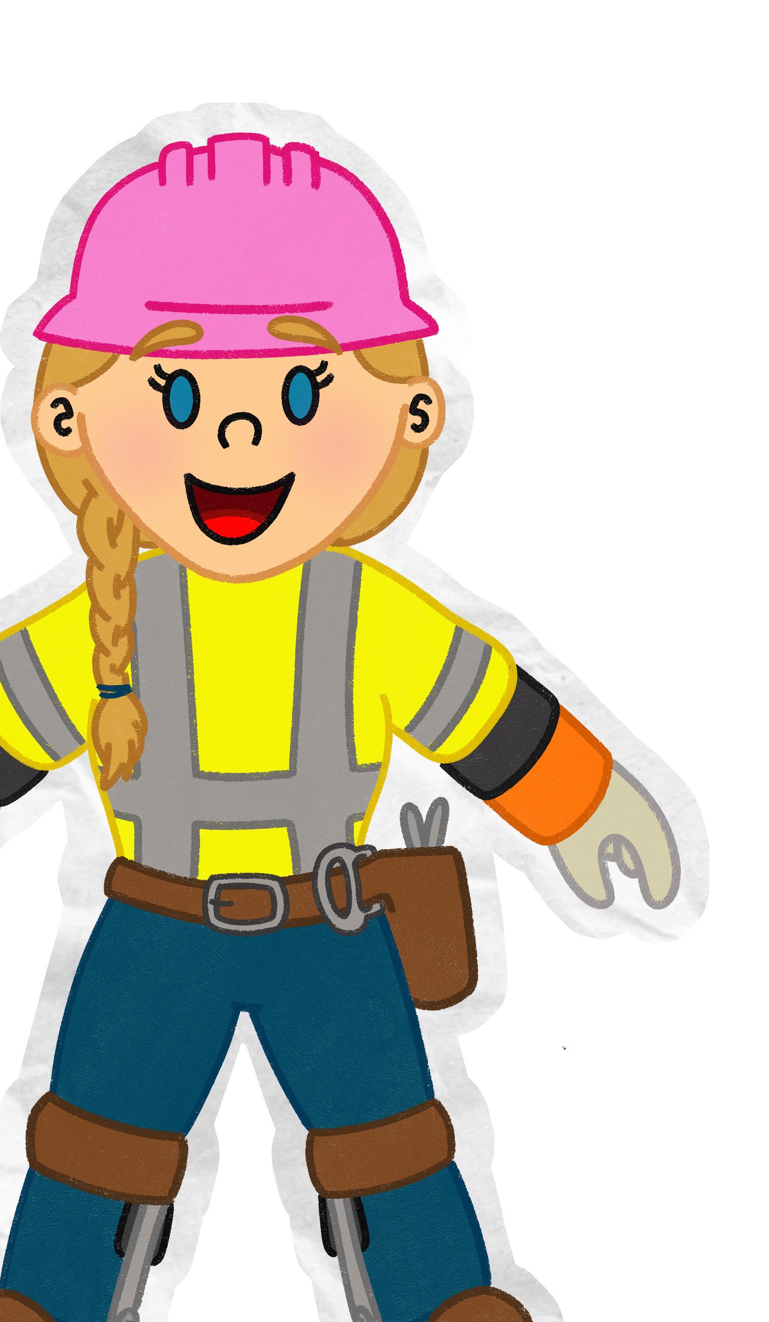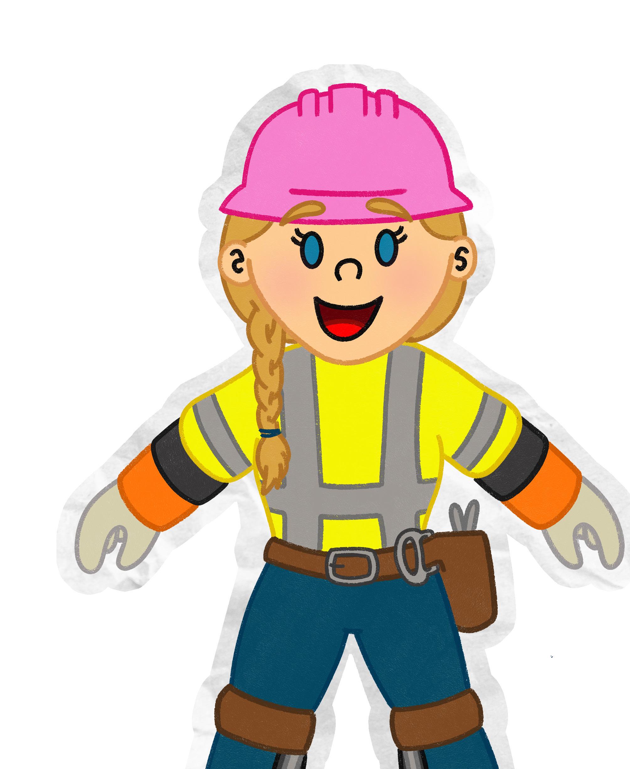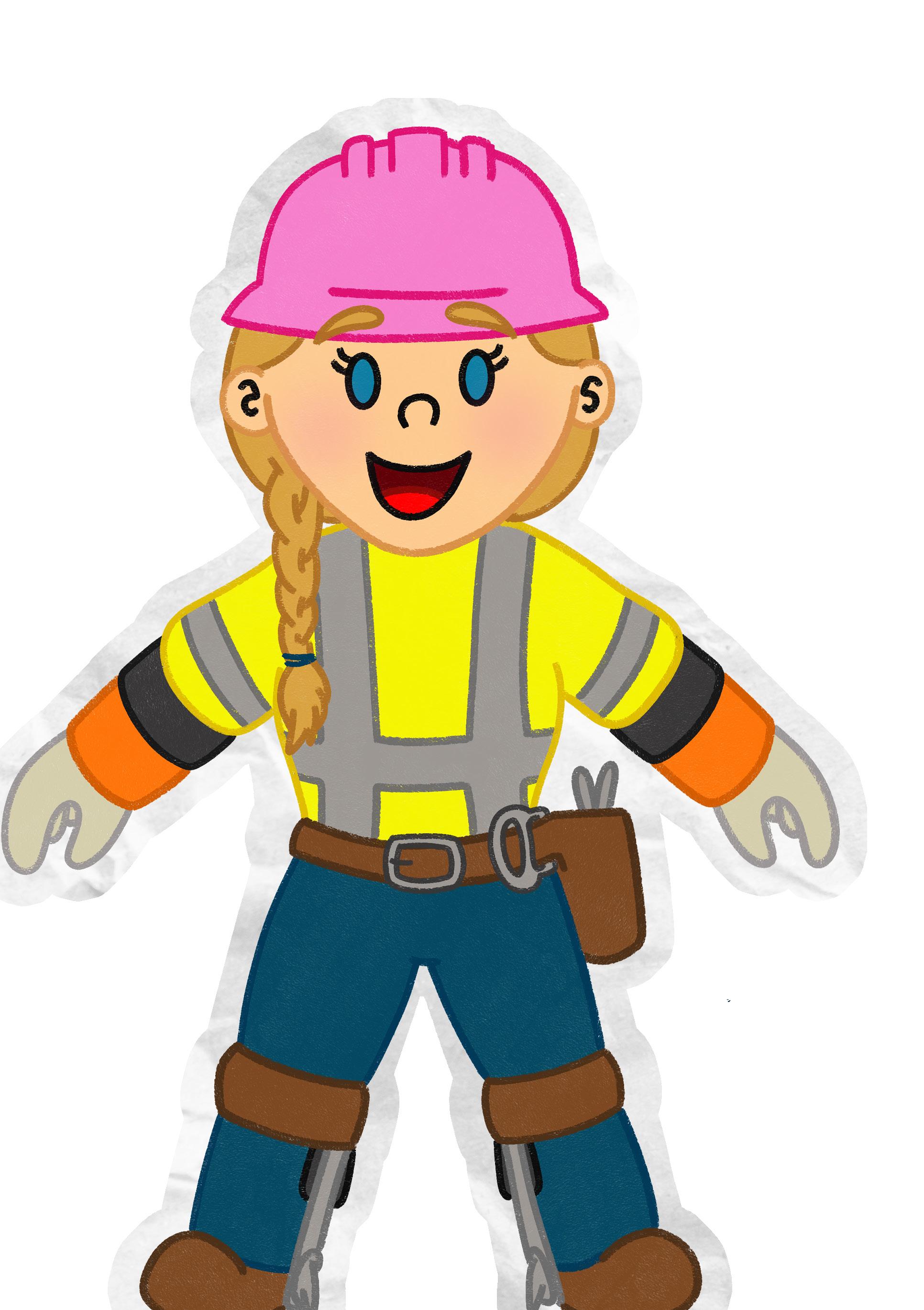 Color her in, cut her out, and place her over all the lineworker images in this book as you read!