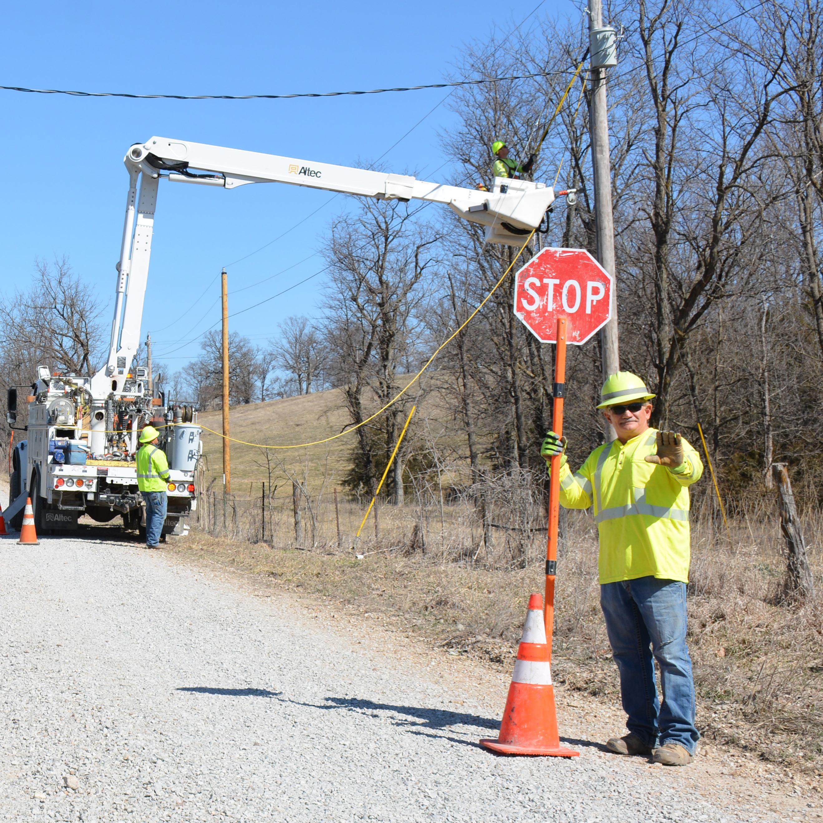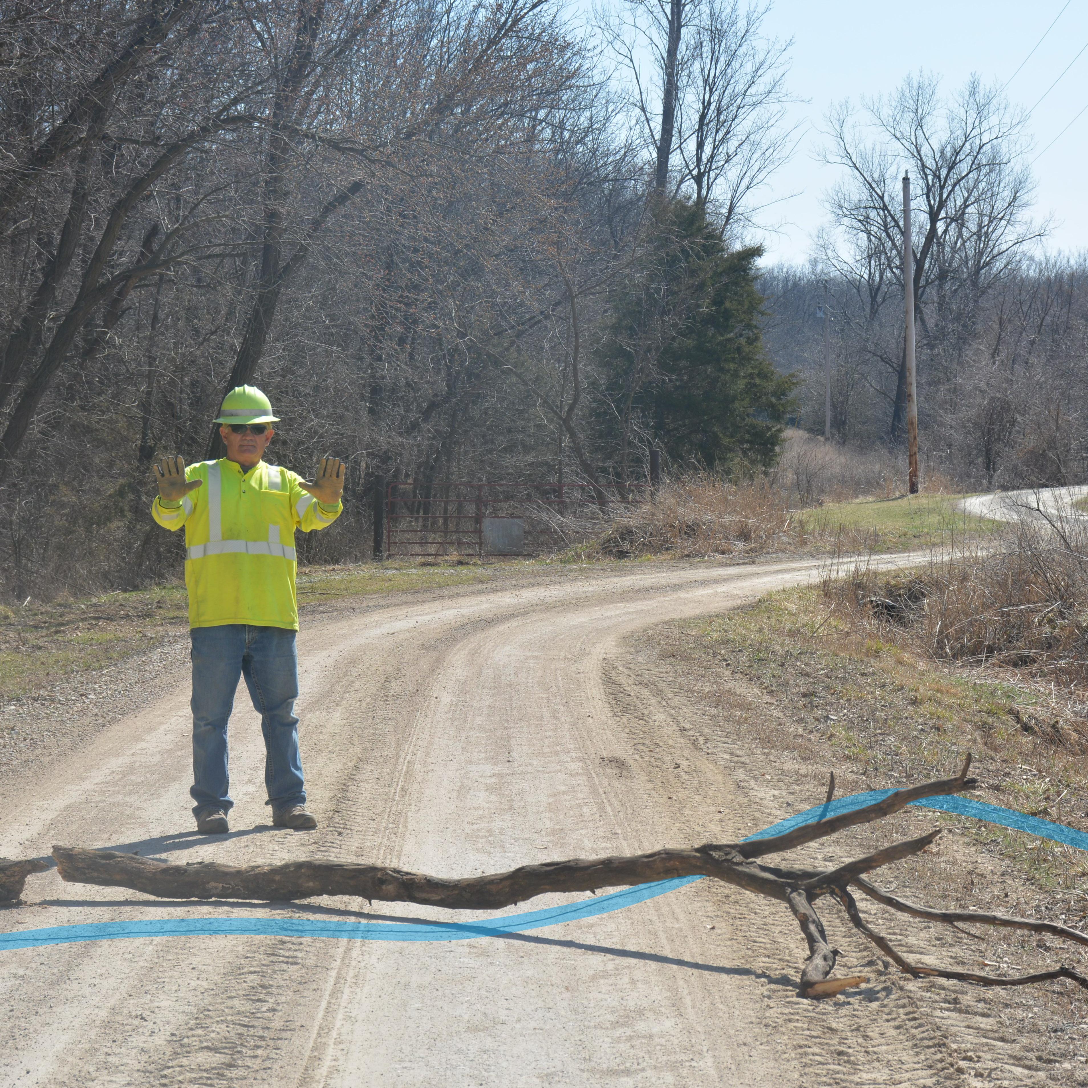 When we are working near a road, one of the lineworkers on our crew will be a flagger. That means they alert traffic on the road to slow down or stop. This keeps our team and the drivers on the road safe!
