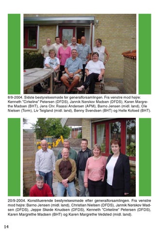 20/9-2004. Konstituerende bestyrelsesmøde efter generalforsamlingen. Fra venstre mod højre: Barno Jensen (midl. land), Christian Nielsen (DFDS), Jannik Nørskov Madsen (DFDS), Jeppe Skøde Knudsen (DFDS), Kenneth ”Cirkeline” Petersen (DFDS), Karen Margrethe Madsen (BHT) og Karen Margrethe Vedsted (midl. land).