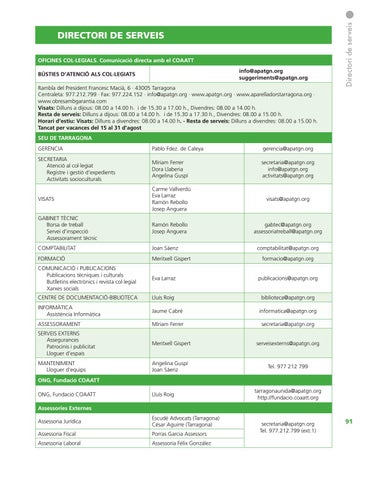 OFICINES COL·LEGIALS. Comunicació directa amb el COAATT info@apatgn.org suggeriments@apatgn.org