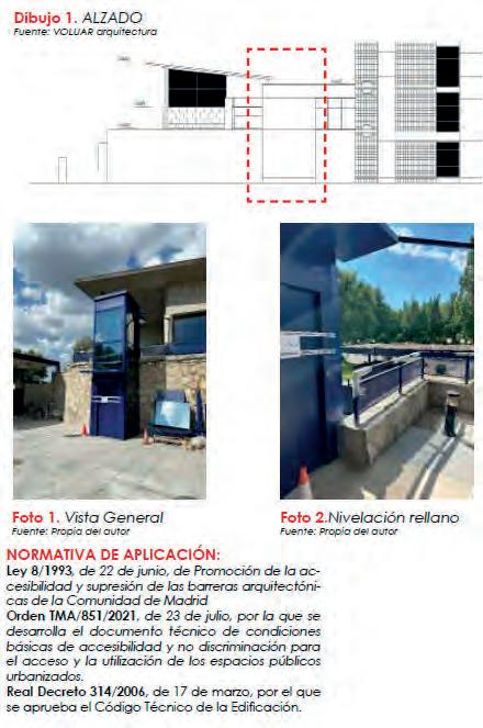 La actuación que a continuación describimos se corresponde a una intervención integral un edificio administrativo (Comisaría de Policía). Entre las numerosas actuaciones llevadas a cabo se encontraban las de Mejoras de Accesibilidad, tanto en el interior como exterior del edificio. Son precisamente, las llevadas a cabo en el edificio las que son objeto de este ejemplo. Dicha actuación, es como consecuencia de poder dotar al edificio de un acceso directo desde el exterior del patio para poder salvar el desnivel de aprox. 3.50 m existente que en su día se resolvía mediante una escalera y posteriormente con un sistema de salvaescalera de dudosa practicidad y numerosos problemas de mantenimiento.