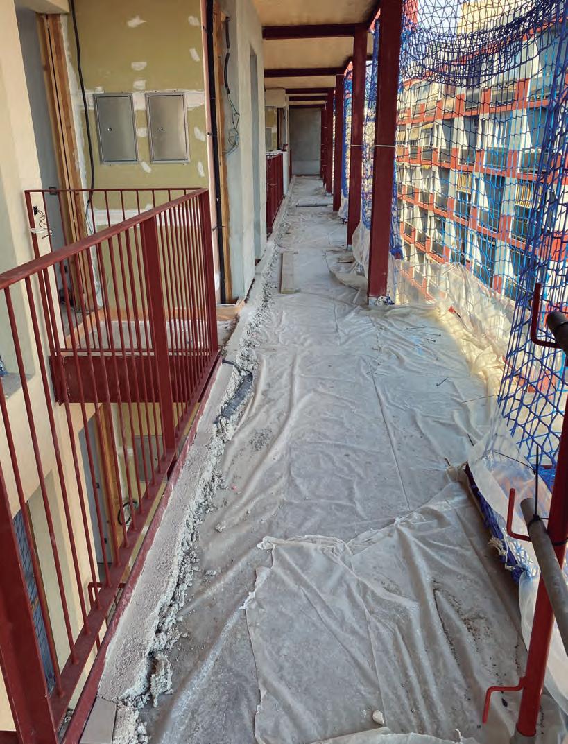 De este modo, la actuación llevada a cabo consistió en instalar un ascensor exterior homologado y adaptar tanto desembarcos como accesos, con demoliciones parciales de solados, petos y modificaciones puntuales a nivel de instalaciones (electricidad y comunicaciones).