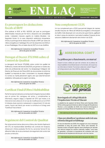 Entrevista a Alfredo Sanz Corma, nou president del CGATE L’eficiència energètica, assignatura pendent de l’administració El sector hoteler considera importants els arquitectes tècnics Edificis singulars: Vallmoll dóna vida al seu castell Dades de síntesi de la construcció 2017