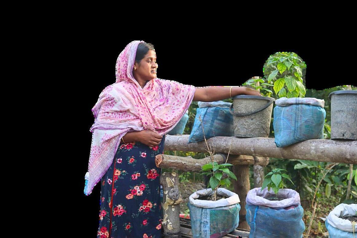 “ After receiving training, I cleaned my homestead land – it was previously barren – and started cultivating vegetables and implementing climate adaptive technologies, like hanging gardens, and started earning from that. I sold vegetables and earned 3000 taka selling chili and brinjal. I am very happy that I am now able to cover the education expenses for my kids. ”