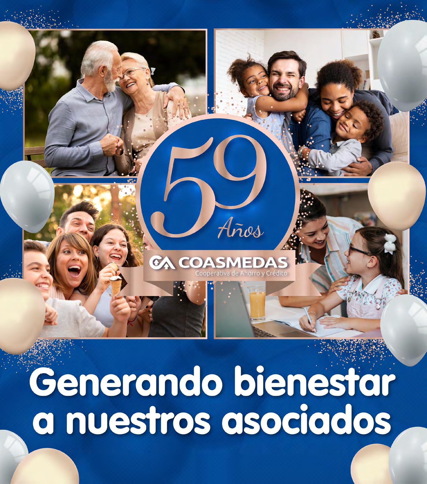 Para nosotros, la familia Coasmedas, es un orgullo poder contar con ustedes, nuestros asociados y sus familias los invitamos a seguir dejando huella juntos, y así, poder celebrar un año más de Coasmedas, ya son 59 años apoyando los sueños y proyectos de todos nuestros asociados, quienes han sido el impulso para mejorar y entregar nuestra alma día a día.