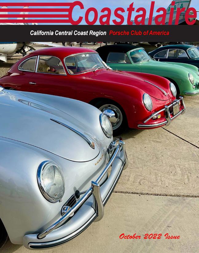 Coastalaire is the official publication of the Porsche Club of America, California Central Coast Region. The opinions expressed are those of the authors and do not necessarily represent the of ficial position of the California Central Coast Region of the Porsche Club of America, its officers or members. Permission is granted to charter regions to reprint if appropriate credit is given to the author and Coastalaire, with the exception of copyrighted material. Any material appearing in the Coastalaire is that of the author, and does not constitute an opinion of the Porsche Club of America, the California Central Coast Region, its Board or Appointees, the Coastalaire Editors, or its staff. The Editorial Staff reserves the right to edit all material submitted for publication.