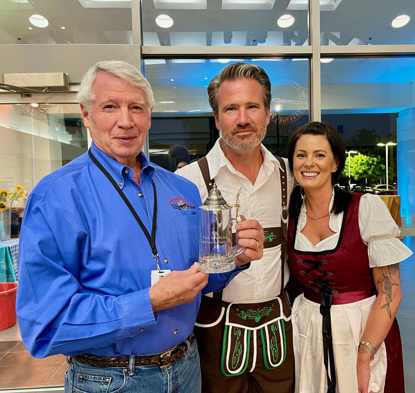 On Saturday, September 24th, Andy & Susan Winterbottom, Gil Igleheart & Carol Walker, and Jan ice & I were down at Porsche Santa Barbara for their Oktoberfest party. This was their party for thanking us, their customers, for our patronage. There was great food and many, many nice Porsches to see. Porsche Santa Barbara General Manager, Rene Verbrugge, even dressed in his best lederhosen and presented an event mug to Andy for his birthday! Thanks Porsche Santa Barbara for the great food, wine, beer and great service to our club!