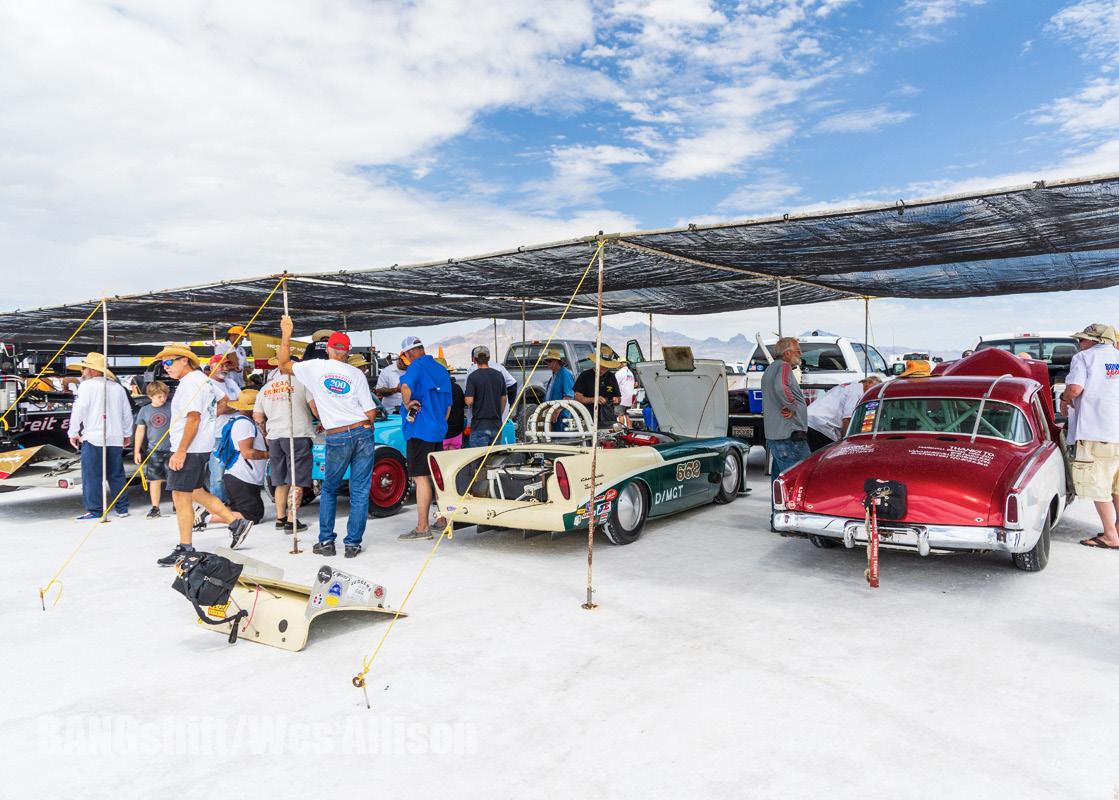 When I arrived at the Salt Flats Friday, the weather was partly cloudy and the salt was in great condition. There were also race cars of two other friends pitted next to the car I was crewing on. We all went to get the cars teched and returned to our pit area. The other two crews left for the day before our crew, since we had a few things to work on. A strong wind came up suddenly, as it is prone to do. So we secured the pit area and equipment of our friends pitted next to us before we left for the evening. I went and checked into my hotel, and some thunder storms hit, so I stayed at the hotel instead of meeting the car owners for dinner.