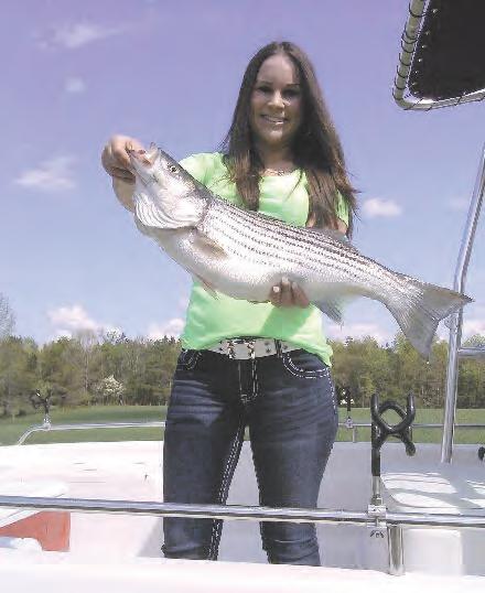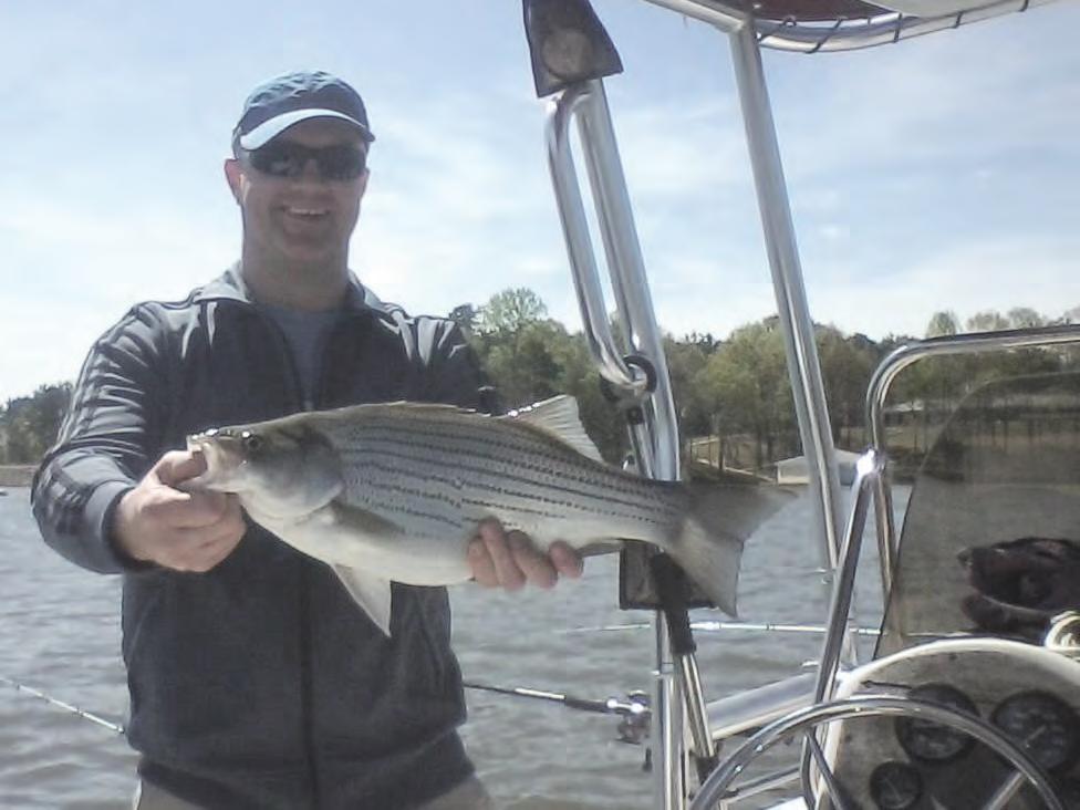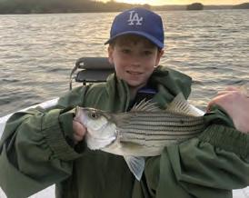 Hybrids / Stripers – Down lining live threadfin shad is the most productive method in June. Caleb Gibbs pictured here got several nice hybrids using this method.