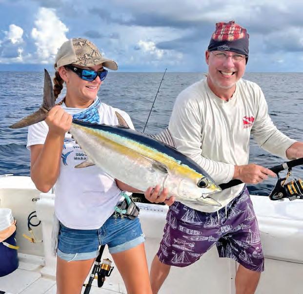 Although you don’t have to run as far, the same consolation prize applies to heading out for tilefsh, snowy and yellowedge grouper, queen snapper, barrelfsh and rosies. Mahi fshing to, from and during deep-dropping rounds out a trip nicely.