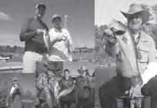 I typically have three or four folks with me every trip. We start by ring down whole squid on the jig. Meanwhile, I’m on the sabiki jigging up whatever is on the bottom below us. I don’t care what is coming up on the whole squid, as this is not the main focus. e real objective is to set a nice ‘chum slick” on the bottom to attract the sh you’re really shing for. A er 4 or 5 rounds of the whole frozen squid, we will re down live pin sh or whatever I’ve jigged up on the sabiki. e other advantage of shing a live pin sh, grass grunt, sailors’ choice or whatever you can jig up, is it eliminates the trash bites. In addition to eliminating the trash bites from small snapper, seabass and other “undesirables,” it’s like physcological warfare, as the gags, scamps and reds cannot digest all that is going on here. To them it appears like the pin sh, grass grunts etc, think the live baits were running around picking up squid pieces, and the squid or crab jigs have caught them and the live bait is struggling to get away. BAM!!! e bite happens. is, my friends, is the di erence between “bottom shing” and GROUPER shing.