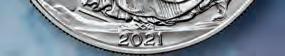 Silver Eagle Type 2: In honor of the popular 99.9% silver coin’s 35th anniversary in 2021, the Silver Eagle received a new, esteemed Type 2 “Eagle Landing” reverse design. This is the current issued coin by the U.S. Mint. Brilliant Uncirculated (BU) condition coin included in set.
