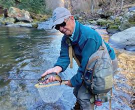 and the Caddis about a 16. The Sallies are usually about a size 16 also. If you experience a large hatch of either, there should be numbers of trout on the surface feeding. Yes, you can catch them underwater but who would want to. A short six-foot two weight is perfect for the small jump across streams of Appalachia. A longer seven and a half foot or eight-foot three weight is about right for the larger streams for sniping those hardto-reach risers. Both should be fairly soft or medium action to cushion the hook set a little and smooth out those runs from a jazzed-up rainbow. Fiberglass rods are great for this along with bamboo. Wet wading is a good idea if you are hoofing it up one of the mini streams, sometimes for miles. The afternoons are getting a little steamy and waders are a curse. Just watch out for creepy crawlies and poison ivy! Trout are active pretty much all day for at least a couple of months before the summer sizzle kicks in. I’ll see you on the river!
