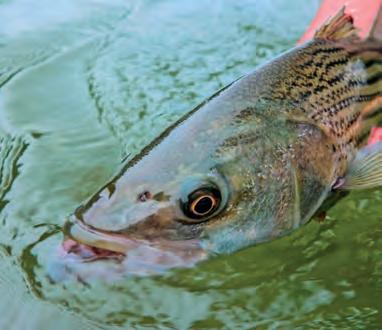 SAFETY: Tis list will vary depending on where you’re fshing, but here are some items to consider: a PFD—the infatable ones are more comfortable to wear; a knife attached to you to cut free from entanglement; Signaling devices such as lights, beacons, mirrors and whistles; a frst-aid kit will keep you on the water in the event of minor injuries.