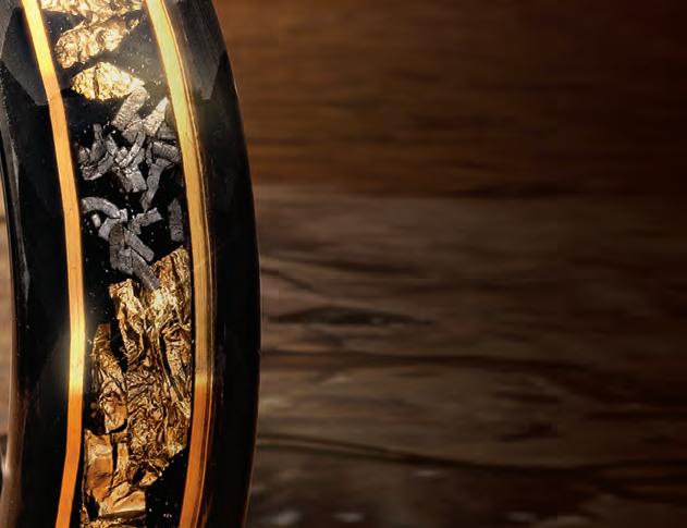 Now picture this: a ring, not just any ring, mind you, but a masterpiece crafted to adorn the fingers of the discerning. Crafted with meticulous care, each piece encasing ribbons of 24 karat gold in a Tungsten setting, whispering tales of luxury and prestige.