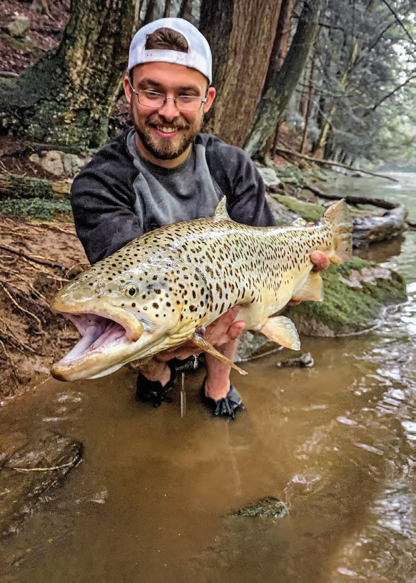 Part-time guide Stephen Budkey catches a lot of outsized trout fshing the streams of western Pennsylvania. Much of his success with giant 6- to 15-pound rainbows and browns has to do with location, but he also uses some interesting tactics that specifcally appeal to large fsh.