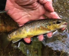 Our wild trout’s first challenge is distilled water. Most of Georgia’s mountains have a geologic base of granite. That granite produces water hardness of about 4 parts per million (ppm) of calcium. Compare that to limestone streams with 100200 ppm, where aquatic insects are plentiful and larger due to more productive water chemistry. Little food here means that our wild trout remain small (adults < 9 inches) mature, spawn early and die before their third or fourth birthday. Think of growing your tomatoes in Miracle Grow potting mix versus sand.