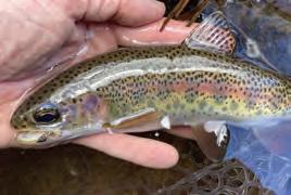 The last major challenge is steep slopes. If you think you have a hard time hiking uphill, just try wading up that steep, bedrocklined stream channel. Sure, it’s easier going if you’re behind a rock or log during normal flows. But what about that gully-washer following a three-inch rain? Biologists’ sampling data from Georgia and its neighbors (SC, NC, TN, Smokies) show that freestone stream trout populations here are controlled by floods. Population size can yoyo annually by a factor of 2 or 3. Rainbows fare better since they’re spring spawners, while the fall romantics (specks and browns) can have their eggs and fry washed out by winter floods, too.