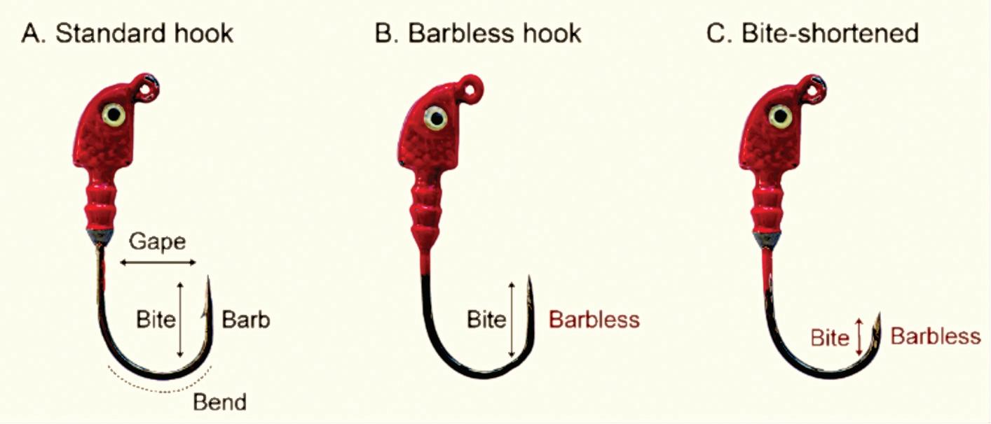 Researchers have designed and tested a new style of hook that takes catch-and-release to a whole new level. ese “bite-shortened” hooks are intended to allow sh to “release themselves” without being handled by the angler.