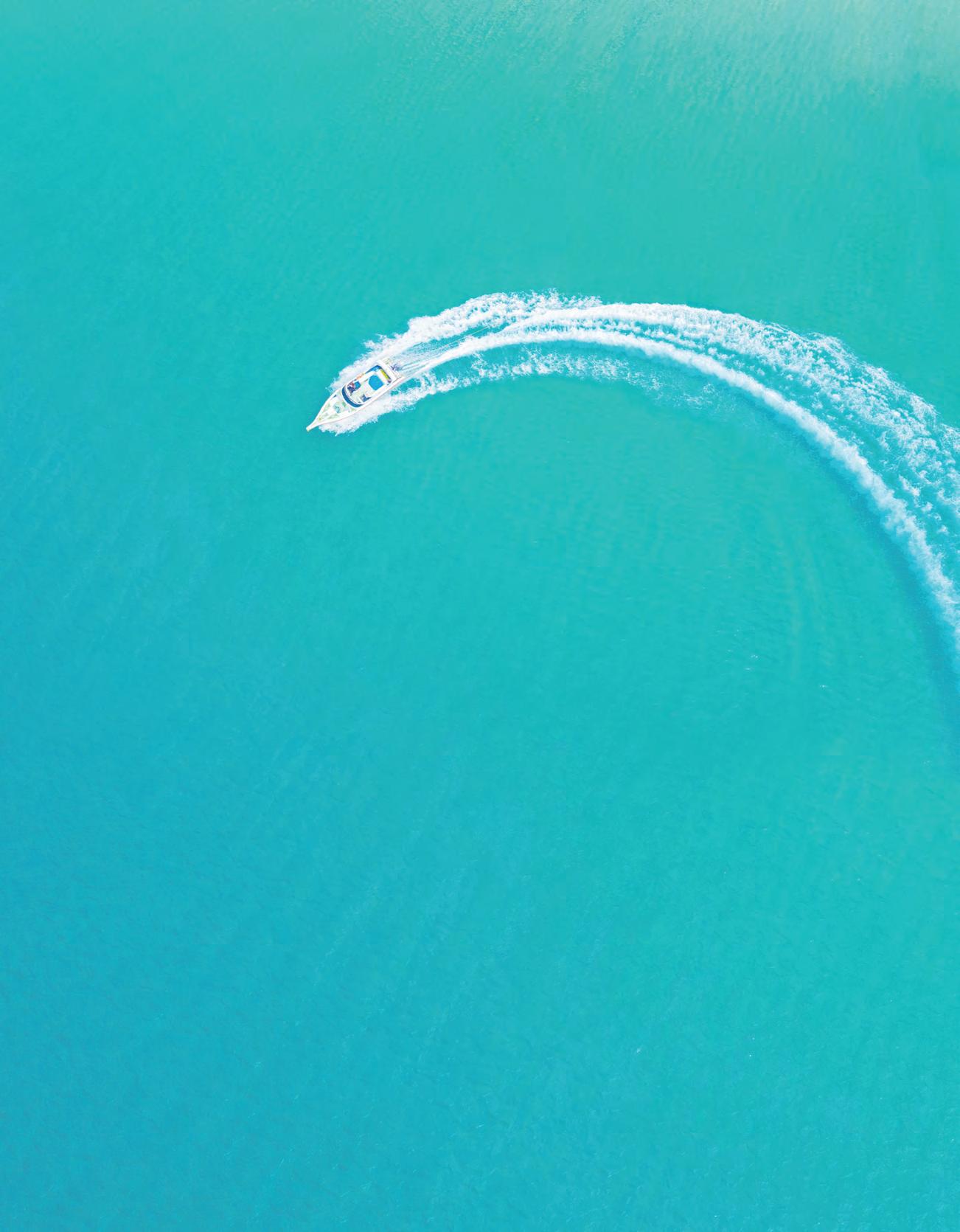 e center console is nicely nished with plenty of room for Yamaha’s Connext® 5-inch touchscreen that controls the boat’s entertainment and vital system functions, a glass windshield, stainless steel steering wheel, a locking glove box, and a 9-inch Simrad® marine electronics system. And for the rst time on a Yamaha center console boat, all three models get a wirelesscharging phone mount.