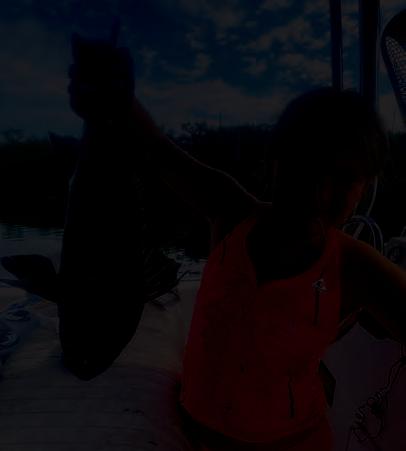 Now… back to the sh we never saw! We shed some ats right where the tall marsh grass met the canals. e water was usually less than a foot deep. We would cast right next to the grass and wait for sh that were cruising this edge in search of food. en it was on! Your line would cut a wake as the sh ran for deep water and peeled drag. ese sh used any structure or rocks they could nd to break o . Even when they ran to deep water, they just kept going. We broke several lines before deciding to pull up anchor and chase the next big one.