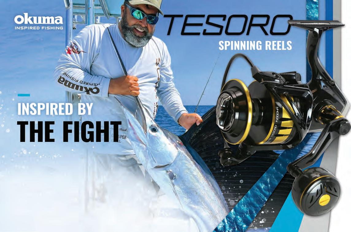 Tesoro spinning reels feature a carbonite high-output DFD drag system with Cal’s drag grease that puts out over 55-pounds of fsh stopping power. Built with strength and protection in mind, Tesoro features an IPX-7 full-body waterproof design and proprietary ALUMILITE body, side plate and rotor. With an interchangeable screw-in handle system and fve models from 8000 to 20000 size, Tesoro spinning reels are sure to complement any big game saltwater arsenal.