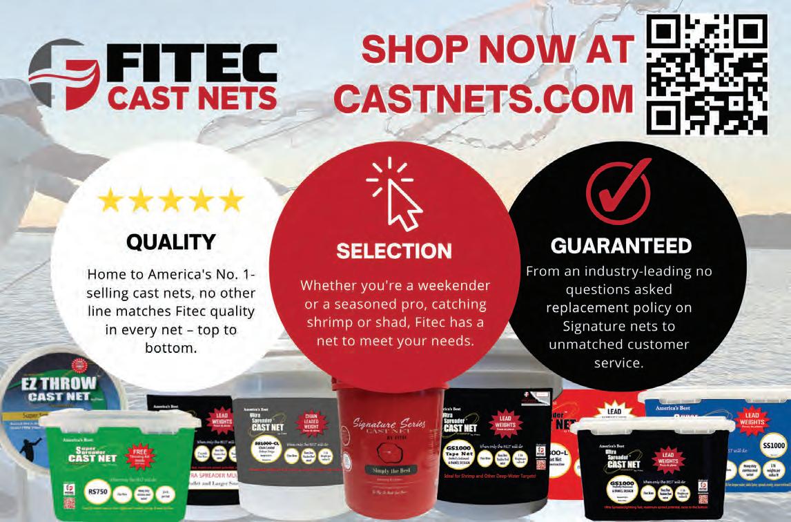 been scarce to non-existent lately, but don’t worry... it’s almost here. Get yourself a good cast net; Tim Wade nets are what ya want. Get a little extra lead on it to sink it faster. Leave the “Wally World” net at home; that 4-footer just won’t cut it. We normally throw a 10/12 foot net.