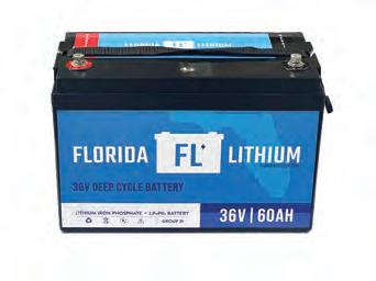 Fast forward 40 years, and Mike Sr. parlayed his experience with electronics to test and scrutinize a new generation of high-quality, fast-charging lithium batteries. Mike established a central Florida test lab and began ordering samples from several overseas manufacturers. Even the platinumtier manufacturers provided varying quality in components, cells, boards and overall inconsistent construction. Several years later, with a select group of top-tier vendors, Florida Lithium was launched to provide bestin-class deep cycle-dual purpose (800 cranking amps) LifePO4 batteries that meet or exceed all Mercury requirements for lithium batteries. Today, Florida Lithium’s product line ranges from 12V, 36V and 48V batteries, providing versatile options for cranking, house electronics, or trolling motor applications. Teir DeLand warehouse is available for pickups Monday through Friday (by appointment only), and they ofer shipping nationwide. Florida Lithium also provides batteries and accessories to marine dealers, boat builders and marine service/repair shops throughout the Southeast.