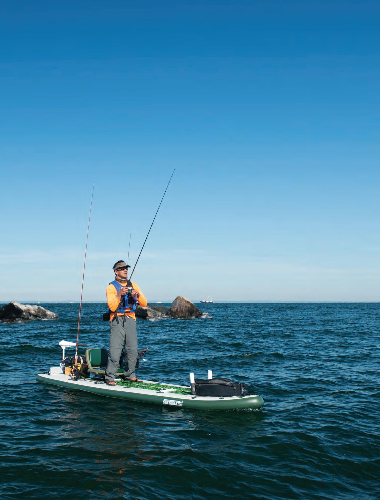 Use common sense and check local regulations. Protect yourself from the sun during the day, be properly lit at night, and stay out of high-trafc boating areas and channels. You are also required to carry a PFD and a sound producing device, such as a whistle.