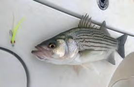 When the bite is hot, a good angler might boat 8 to 10 fsh, and 4- to 6-pound hybrids are not uncommon. “A 6-pound hybrid is going to fght like a 10-pound striper,” Moore said.