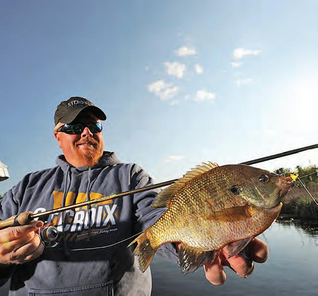 !is is the time of the year—April and May—that bluegill anglers look forward to all year long. !is is when the feisty, hard- ghting pan sh begin their annual spawn. !eir popularity is unmatched with young and experienced anglers looking to test their light line and tackle.