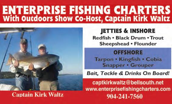 For more fishing tips listen to the Outdoorshow radio program on 1010am or 92.5fm every Saturday from 7am to 10am. He can be reached at 904.241.7560 or 904.626.1128 or go to www. enterprisefishingcharters.com