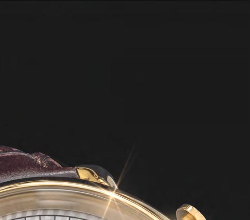 With its remarkable retrograde hour and minute indicators, sunburst guilloche face and precision movement, this design is truly one of a kind. What does retrograde mean? Instead of displaying the hands rotating on an axis like most watches, the hands sweep in a semicircle, then return to their starting point and begin all over again.