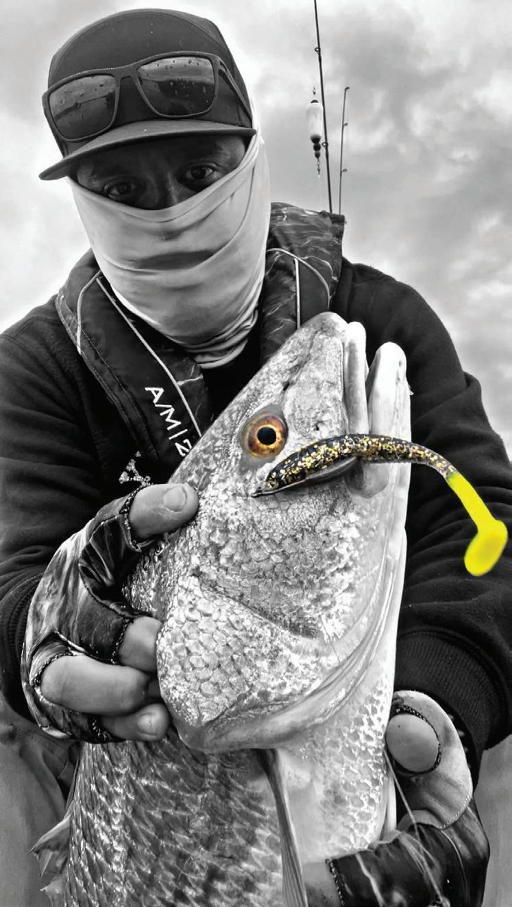 For more info on the squid jig and dri ing, check out Tim Barefoot’s YouTube channel and website, barefootcatsandtackle.com.