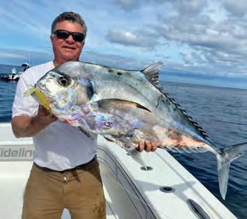 !e pelagics will be on the march up the coast headed north, and I have taken a much di erent approach to shing in general, but especially for the pelagics. Sure, we may troll for a short period in the morning to mark some bait and/or productive bottom holding sh like African pompano, big snapper and grouper, but trolling will quickly stop and dri$ing and/ or %ying the kite will begin as the sun rises in the sky. As the title of the article suggests, we have either stopped on the way out or will start to work with the Sabiki right away.