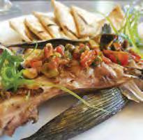 to get to bite, but they pull HARD! You have to have seriously strong connections because they will test every part of your tackle. ere’s one more sh that is almost as good table fare and that’s the white jolt head porgy. Same tactics, same everything; you just gotta nd them. ey are beyond delicious. You can troll all you want, but I’ll spend my time bottom shing for the best groceries and keep the light line out back for any wahoo, dolphin, kings or tuna that may cruise by. It pays dividends to jig up live cigar minnows and live sardines on the Sabiki or just purchase them for the light line. August and September are the months that wahoo, yellow n, dolphin, sail sh— you name it—are everywhere inshore following big schools of bait, and a live cig or sardine will de nitely get the bite. I would de nitely keep a live pitch bait ready on a circle hook on piece of %uorocarbon for the sail sh that’ll swim by the boat. Keep the thumping music, cooler slamming loud everything to a minimum if you want to have a shot at getting some of these sh to swim up to the boat. Fact: You’ll see more sh near the boat when you’re quiet, otherwise they will keep their distance and you probably won’t see them, and they’ll have their guard up if they do get near the boat.