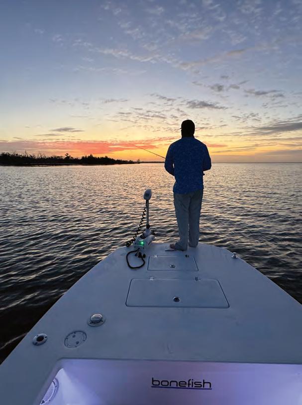 Don’t be surprised if you catch these sh in extremely shallow water this month. !e 66- to 68-degree temperature break can be magical this month for the light line. No telling what you’ll catch. Everything can be there, from kings to wahoo and everything in between.