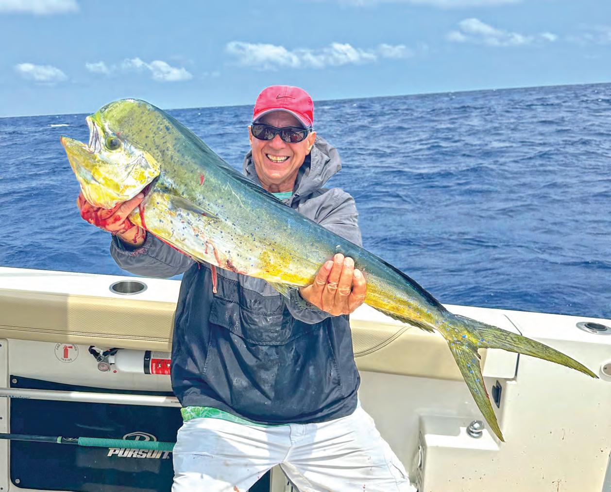 ith summer on our minds, it is hard to believe we are halfway thru 2025! The water temperatures will be gradually rising another two degrees to an average of 82.6⁰F. During this month, wind speeds should become fairly consistent with calm to moderate easterly breezes the majority of the time. Anglers, please be sure to take heed of Mother Nature and pay attention to afternoon thunderstorms this time of year. Late afternoon thunderstorms build and creep up on you quickly. I would suggest getting an early start if you decide to head far offshore to find mahi mahi. If you are the first to find an offshore weedline it can make a huge difference as to what lands in your fish box at the end of the day.