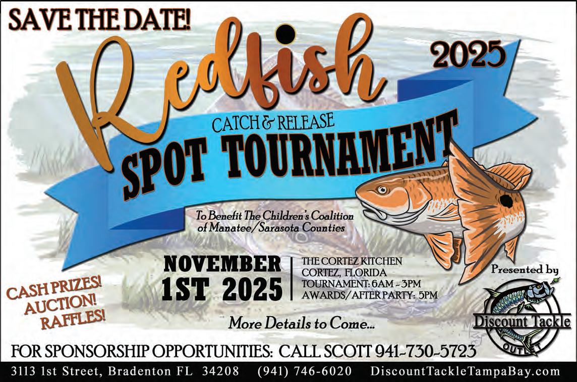 and chum the snapper to you away from the structure. These types of structures are also loaded with goliath grouper and the challenge is to get your catch to the boat before they grab it and head back into the structure. Then there is a good chance there may be sharks and barracudas that will steal half of your catch, making it rewarding if you get them into the boat whole. If the “taxman” stays too persistent where you are fishing, it’s probably time to move to another area. If you move to some natural bottom in 60+ feet of water you can find a spot that will have some lane snapper, which are great table fare. Check the FWC regulations for the amberjack/reef donkey as they are lots of fun and are great for smoked fish dip. If you use fish rules they have the Federal regulations for the species that you can harvest when you go out past 12 miles in to Federal waters. Nearshore along the coast, you may find some schools of the bull reds the breeding stock and they are usually over the 27" limit. The big reds can also be found just inshore on the grass beds where there are plenty of finfish for a hearty meal. They come to fatten up to go offshore to spawn in deeper waters, and you may also find a cobia cruising the edges of the sandbar looking for food. This also is a great month to catch your Grand Slam; snook, red, trout, and a tarpon to complete your Grand Slam! As the waters start to cool down there should be pompano coming inshore as they like to skip behind you boat. If you see this, turn around and cast a jig to the area where you saw them skip or if you have a shrimp try one under a bobber. If you are interested in coming along with Capt. Bart Marx to see how we get it done, call me at 941-979-6517 or e-mail me captbart@ alphaomegacharters.com I also do training sessions where you hire me to come on your boat and teach you where you can take your boat and show you how to use some of the tackle and rods you already have for inshore or offshore fishing. The holidays are just around the corner and we offer gift certificates for people you may know that would like to experience fishing in Southwest Florida!